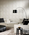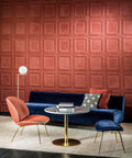 Le dessin chaleureux et charmant de Caisson renvoie à celui d’une porte à panneaux antique typique. Son style évoque celui des vieilles bibliothèques britanniques. Un motif idéal pour créer un relief 3D. Caisson existait déjà dans la collection Intrigue, mais est proposé dans de nouvelles couleurs dans la collection Spectra. De plus, le textile utilisé est différent : le dessin d’Intrigue présente un aspect lisse et doux et celui de Spectra revêt la douceur du daim.