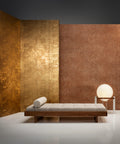 Dans un Japon d’après-guerre qui regorge d’optimisme et de créativité, les teintes métallisées et les matières brillantes fleurissent. Gilded Heritage s’en inspire, évoquant des feuilles d’or autant que la richesse et la singularité du patrimoine nippon de l’époque.