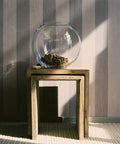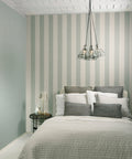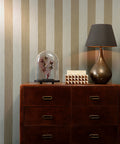 Papier peint avec une structure raffinée de lin et un dessin à rayures en différentes combinaisons de couleurs, allant des subtils camaïeux aux contrastes plus marqués.