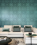 Un motif semblable à des carrelages ; de loin, on pourrait croire que des centaines de carreaux sont fixés au mur. Le dessin en turquoise vous emmène quant à lui dans un palais oriental. Par ailleurs, ses motifs géométriques font penser à un style Art déco : à la fois décoratif et quelque peu éclectique.