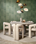 Le terme poétique Rabane désigne un tissu végétal, majoritairement du raphia. Voilà pourquoi notre motif imite à la perfection le tissage un peu lâche d’un raphia dont les fibres textiles s’entremêlant avec nonchalance forment un ensemble aérien et vaporeux. Pour n’omettre aucun détail, une finition brillante a été ajoutée, jouant des contrastes en s’opposant à la rugueuse texture du tissu.