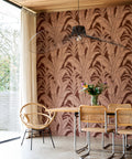 Papier peint avec des dessins floraux alliés à des formes organiques. Placée méticuleusement à la main dans les motifs, une corde de différents matériaux et épaisseurs vient créer un dessin minimaliste tout en relief.