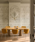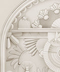 Greenhouse Gathering est un superbe revêtement mural inspiré des moulures décoratives. Le motif imite le sentiment que l'on éprouve en regardant à travers la vitre d'une serre (ou 'greenhouse' en anglais), et dévoile la beauté envoûtante de fleurs luxuriantes. Lorsque l'on y regarde de plus près, des éléments ingénieux apparaissent, laissant deviner l'existence de petites créatures discrètes qui se frayent un chemin dans le paysage verdoyant. Ce revêtement mural dégage le charme de l'art déco et se décline dans une palette de couleurs monochromes évoquant le stuc. Greenhouse Gathering a également un aspect daim apportant douceur et une expérience tactile exceptionnelle.