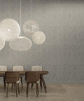 Lacy Longlegs est un revêtement mural en textile 3D créant un caractère doux et tridimensionnel grâce au tissu bouclé. Le motif s'inspire des tissages complexes de l'araignée, de ses feuillages préférés et de ses arcs gothiques.